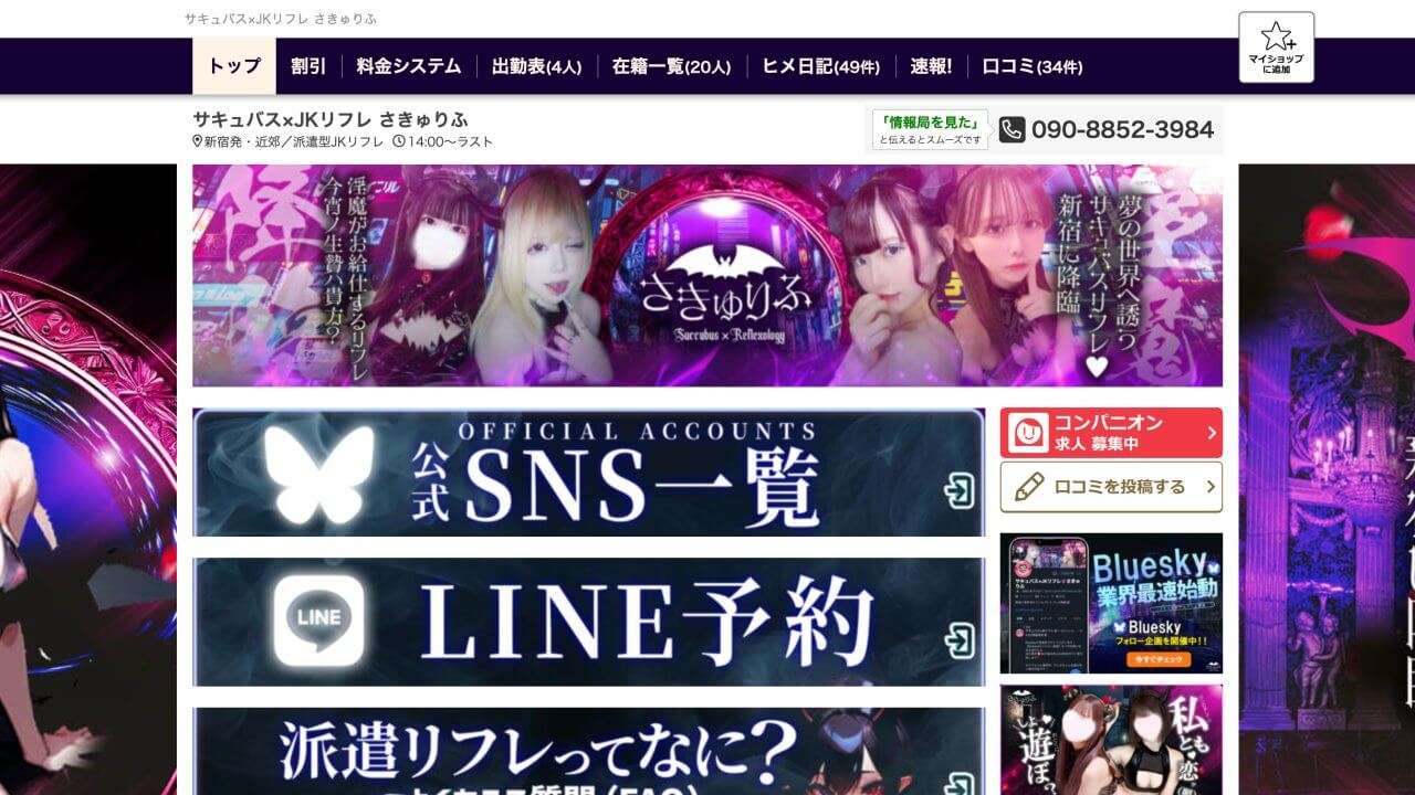 サキュバス×JKリフレ さきゅりふは、業界初のサキュバスをコンセプトにした新宿の派遣型JKリフレ店です。